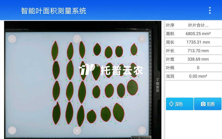 8、多种算法可选:有通用、深色、浅色三种算法,可据叶片颜色选择合适的算法,保证精度。