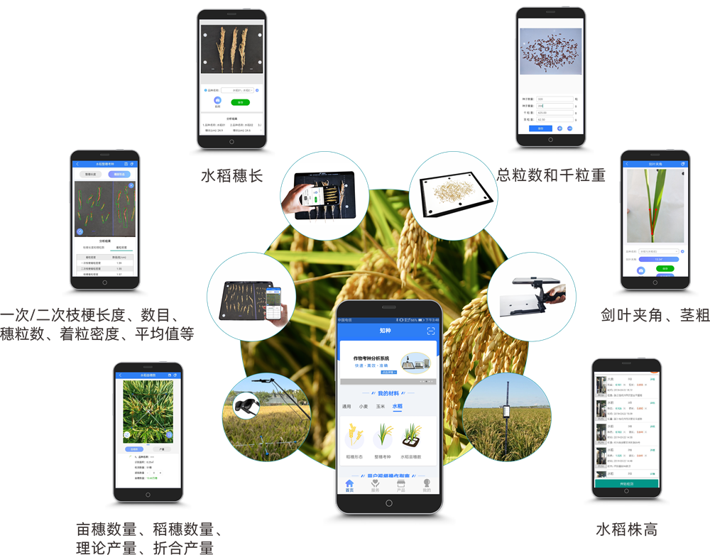 水稻表型检测系统可测量水稻亩穗数、理论产量、水稻穗粒数、穗长、水稻剑叶夹角、茎粗、水稻株高、一/二次枝梗数量和长度、各枝梗对应的穗粒数、着粒密度、穗长、总粒数和千粒重等指标,广泛应用于农科院,高校,育种公司,种子站的水稻研究。