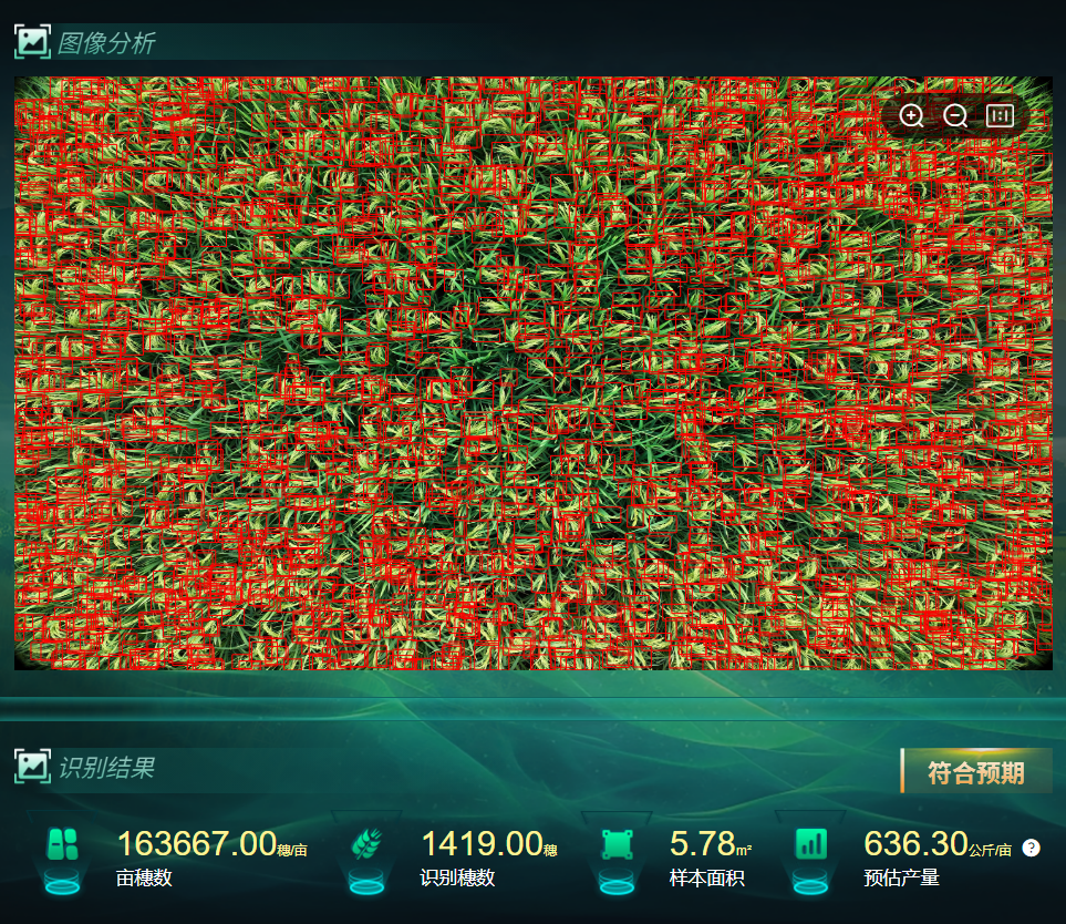 | 产量预估 | 水稻、小麦 | 可精准识别水稻和小麦的穗数,自动计数,还可自动计算亩产量、地块产量、基地产量等数据; |