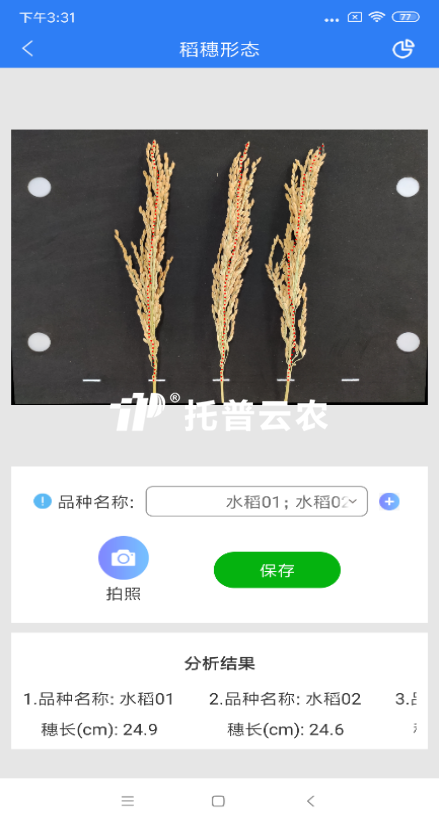 10、自动生成数据列表:测量时间,图片,GPS位置信息,穗长等信息,节约数据整理时间。