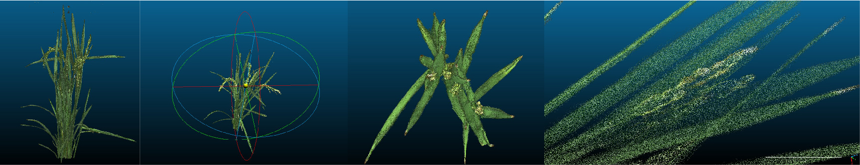 使用立体视觉、多视图(MVS)重构技术等,自动重构生成植物高精度三维模型,计算植物株型结构、冠层结构、颜色分布、体积等表型性状并分析植物生长状况、长势动态变化等;主要应用于植物形态分析(筛选突变株、逆境处理下筛选抗逆种质)、植物长势分析(分析突变体或特殊处理条件下植物生长状态变化)。