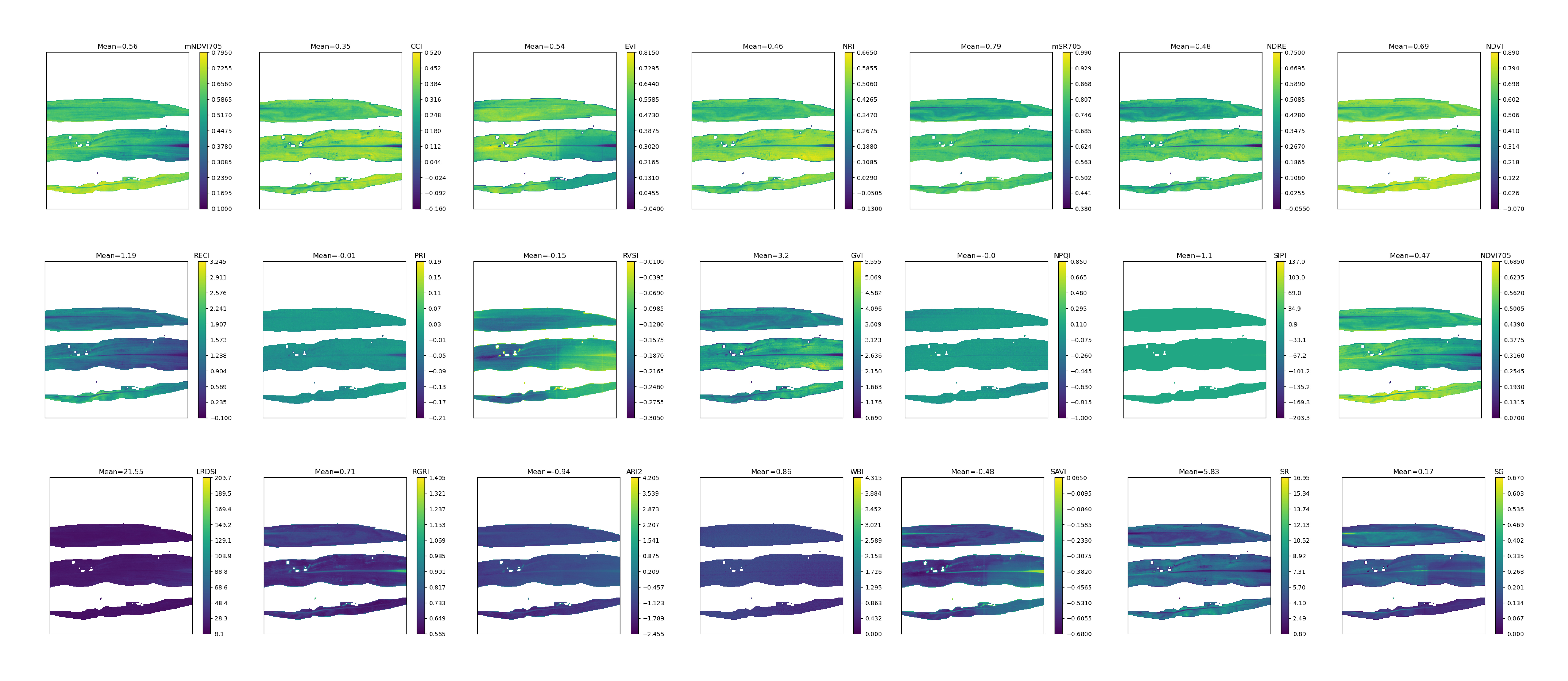 高光谱成像解析:基于高光谱采集图像直接自动对光谱数据进行处理,计算NDVI、SR、GVI等不少于30个常用植被指数;内置农业生物学反演模型,自动对叶片含氮量、叶绿素含量等生物学参数进行分析;支持自定义植被指数快速建模,用于定制化构建长势、病害等模型。